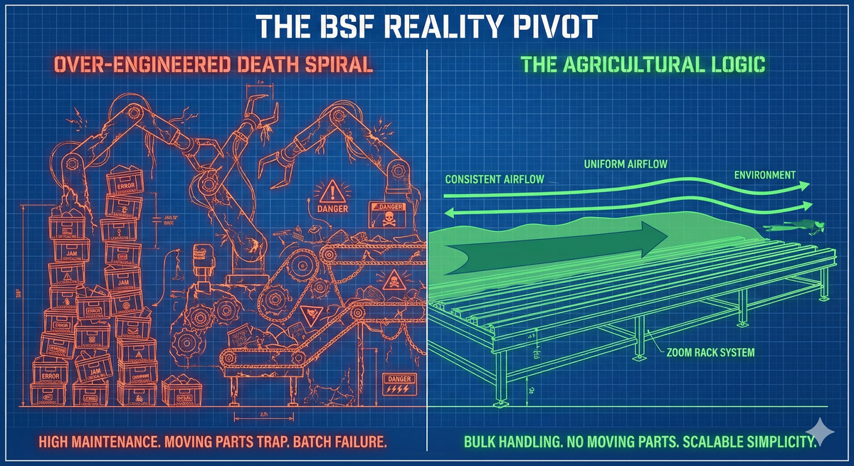The SoldierFlyHub Verdict: > Profitability in the urban BSF model is won at the shredder. By combining the hustle of local waste collection with the engineering of mass balance and gas exchange, operators like Dave Littere are de-risking the Valley of Death one bin at a time.